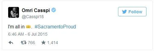 Casspi ha comunicato così via twitter la sua permanenza a Sacramento: