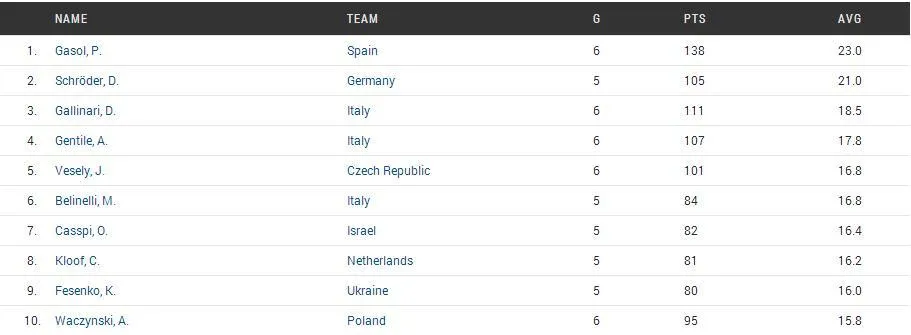 Questi sono i primi 10 di tutto l’Europeo. Il terzo, il quarto e il sesto vestono azzurro. Un triunvirato che senza forzare alla ricerca di canestri, riesce di volta in volta a trovare il leader di giornata. E’ toccato a Gallinari, poi a Belinelli e ieri a Gentile.