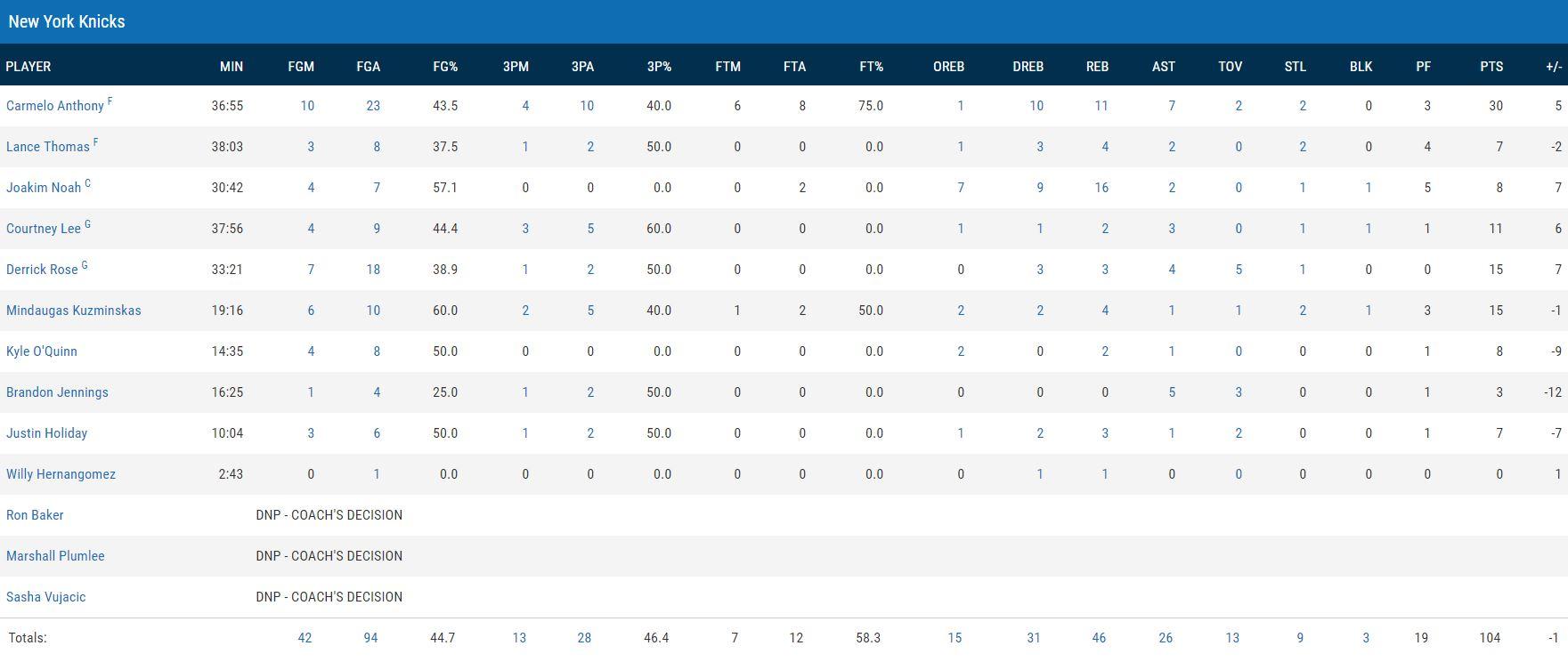 Già, perchè i Knicks sono riusciti nel tentativo di farsi rimontare dopo essere stati in vantaggi per TUTTO il secondo tempo, uscendo sconfitti per la sesta volta di fila da una arena NBA. L’assenza di Porzingis non può essere l’unica scusante di un team che per qualità del quintetto dovrebbe mostrare ben altri risultati in campo e Jeff Hornacek, coach di NY, lo sa bene dopo le recenti critiche subite. Carmelo Anthony, che ha dichiarato la difficoltà di digerire questa sconfitta per la maniera in cui è arrivata, ha chiuso la partita con 30 punti, 11 rimbalzi e 7 assist, vincendo la sfida diretta con Giannis.