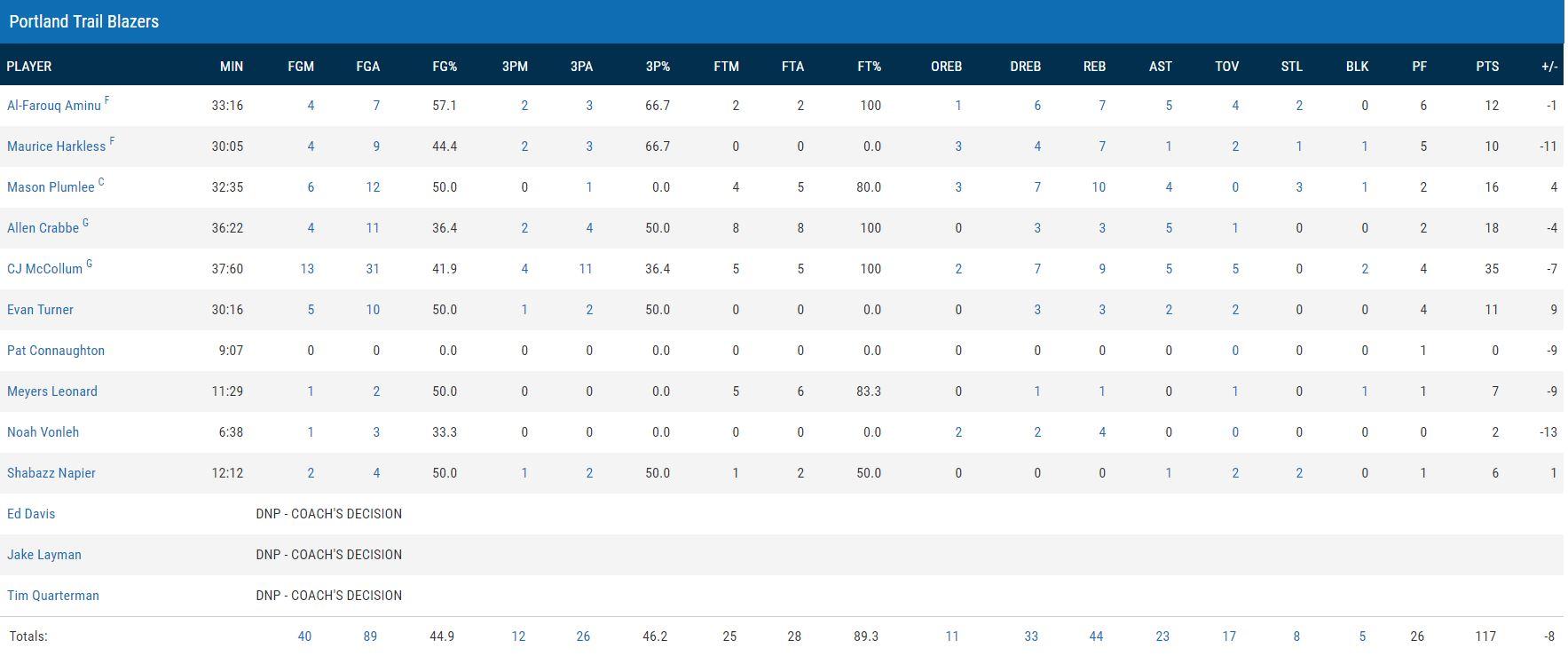 In casa Portland, invece, Cj McCollum si è sentito in dovere di prendersi carico l’intero attacco dei Blazers, prendendosi la bellezza di 31 tiri (1/3 del totale) e andandone a realizzare 13: sono 35 i punti finali.