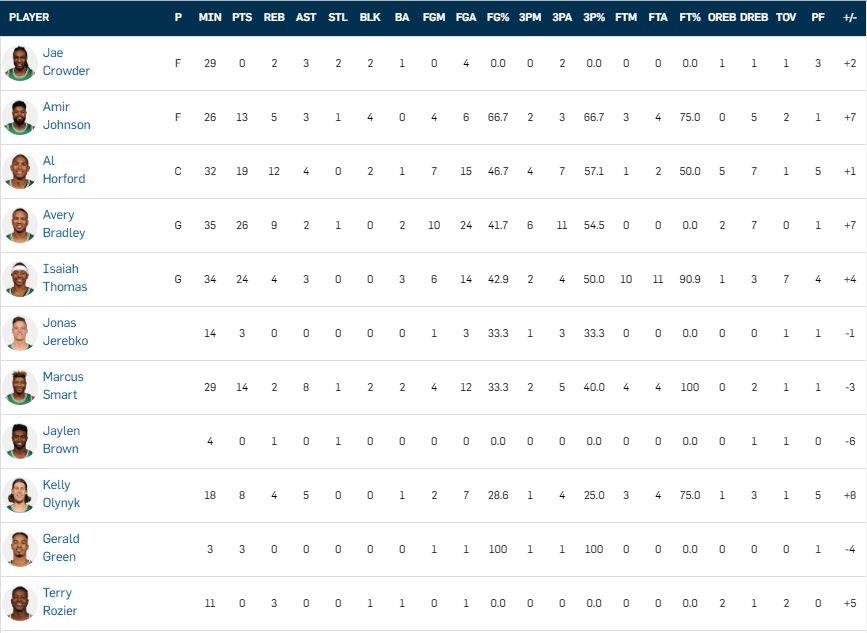 I Boston Celtics hanno la meglio sui 76ers dopo una gara equilibratissima. Eroe di giornata è Al Horford che segna la tripla del sorpasso con 17 secondi sul cronometro (14 dei suoi 19 punti totali ‘provengono’ dagli ultimi 12 minuti).