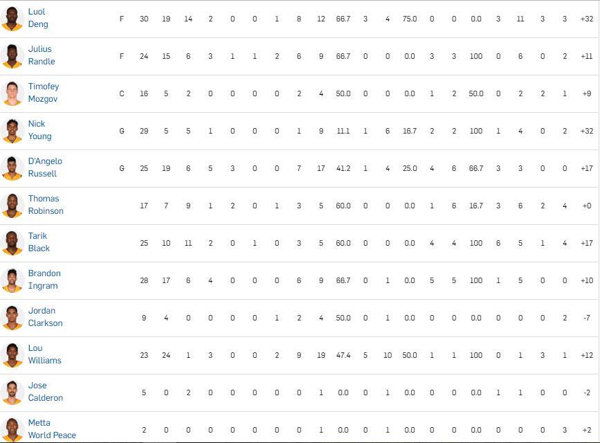 Con più di 12 minuti ancora da giocare, i Miami Heat mostrano una certa difficoltà a rimpiazzare il play ex Phoenix e perdono decisamente la bussola. Dall’altra parte Luol Deng decide di mettersi in proprio e trascina i Lakers con 16 (dei 24 punti totali) nell’ultimo periodo. Bene anche Ingram con 17 punti. Da segnalare la standing ovation dello Staples ad ogni fallo di Metta World Peace. Solo a L.A..