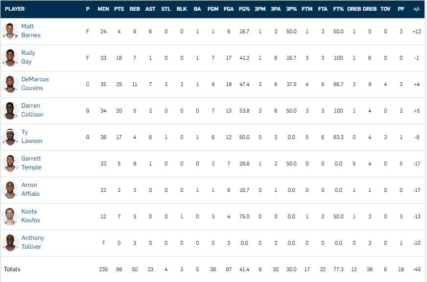 I Kings sono 5-11 in stagione contro squadre con almeno il 50% di record.