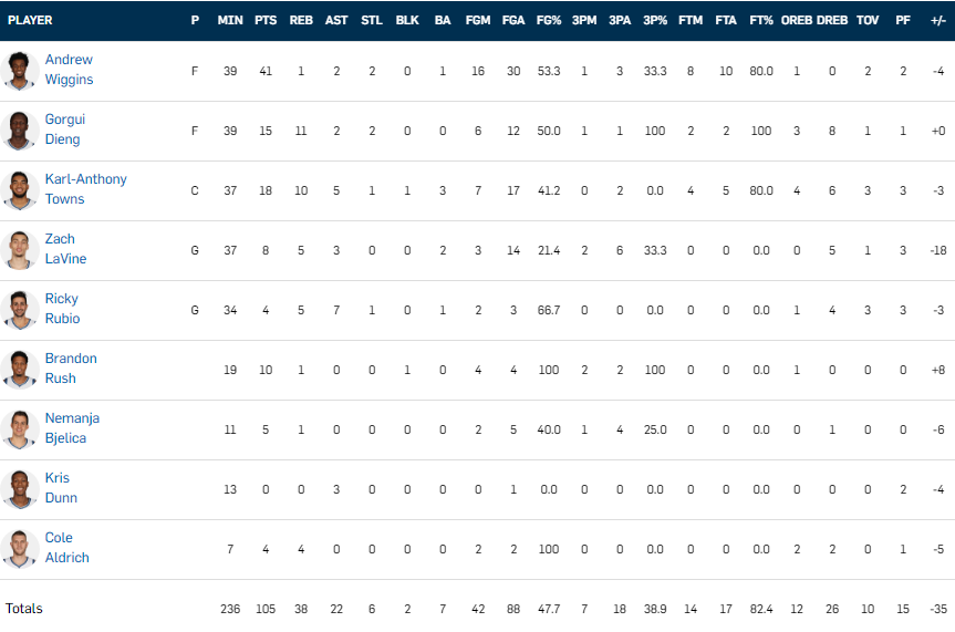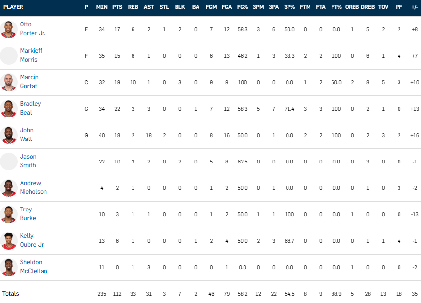 La guardia ex Cleveland ha infatti piazzato 41 punti che però non sono bastati per la conquista di una W. Alla prova del giovane fenomeno di Minnie risponde l’altro fenomeno del match, John Wall, che manda a referto una doppia doppia da 18 punti e 18 assist orchestrando così l’attacco di Washington che chiude con 6 giocatori in doppia cifra sfiorando il 60% dal campo.