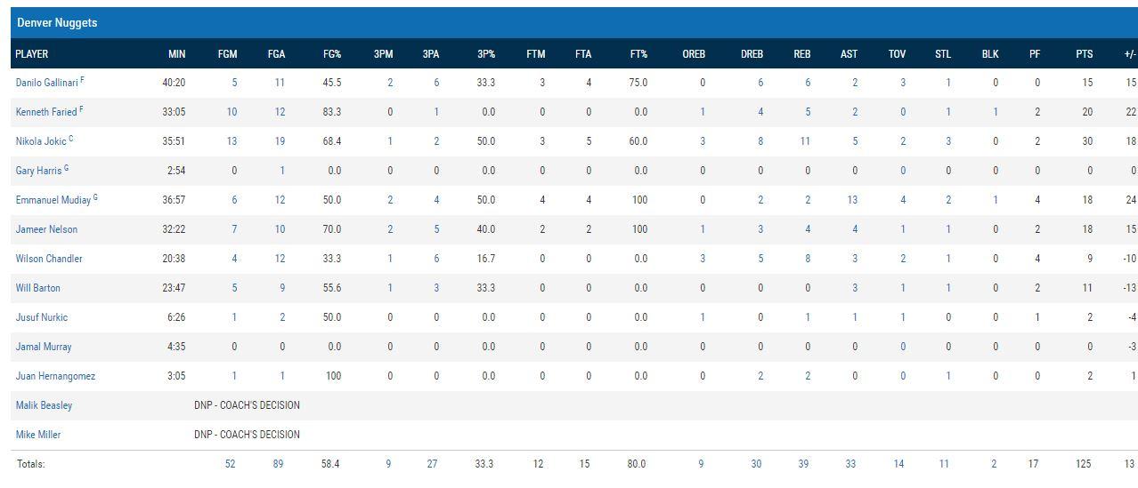 Orlando non riesce mai ad entrare in partita nonostante una gara tutto sommato buona di Vucevic e Payton (20 punti e 12 assist per lui), mentre dall’altra parte, oltre a Jokic, ci sono 20 punti per Faried e 15 per il nostro Danilo Gallinari.