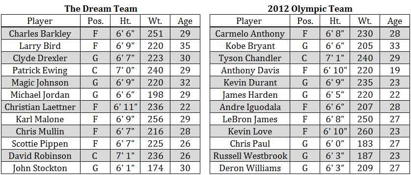 Ecco due roster abbastanza competitivi. Quello di Team USA alle Olimpiadi del 1992, il leggendario Dream Team, e quello di 20 anni dopo.