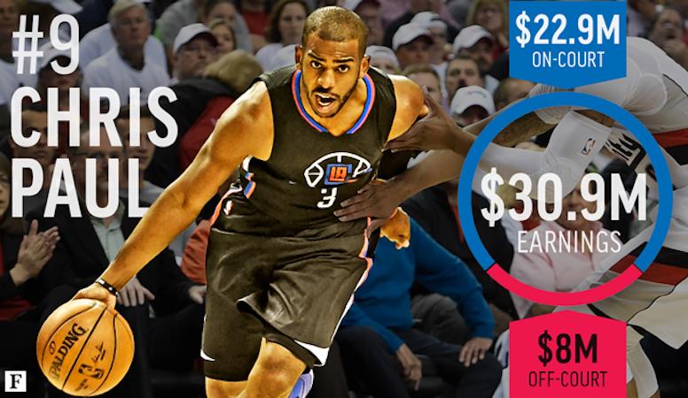 Altro atleta targato Nike (arrivato ormai alla nona scarpa con il brand dello swoosh), ma che poco ricava dai contratti off-court. Ciò che infatti riempie il portafoglio del play dei Los Angeles Clippers è l’estensione da 107.3 milioni di dollari firmata nel luglio del 2013. Più che meritata, vista ormai la sua costante presenza nelle votazioni per l’All-Star Game e i riconoscimenti annuali come leader in assist e palle rubate. Un nuovo contratto con State Farm, che segna una collaborazione iniziata alla fine del 2016, garantisce poi ulteriori entrate che lo portano ad un introito di quasi 31 milioni di dollari totali.