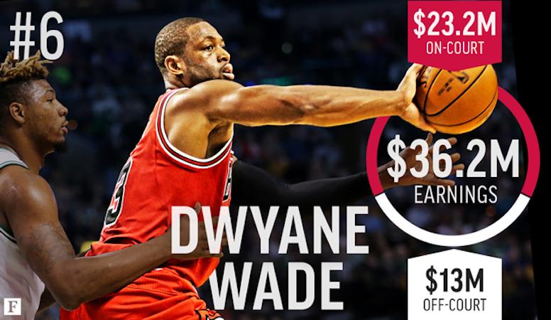 La leggenda di Miami ha sorpreso davvero tutti in estate. Dwyane Wade non ha infatti trovato un accordo con Pat Riley e dopo 13 anni nell’assolata Florida ha deciso di portare i propri talenti nella sua terra natìa: Chicago. 33esimo atleta più pagato del 2016, è andato controcorrente anche in relazione allo sponsor tecnico: dopo aver lasciato Nike nel 2012 ha infatti firmato con il brand cinese Li-Ning che, oltre ad una rendita annuale, gli ha anche corrisposto delle quote azionarie della società. I contratti di sponsorizzazione con FanDuel, Gatorade e Hublot (insieme ad altre 12 aziende) gli garantiscono poi un totale 13 milioni di dollari che, sommati ai 23.2 milioni del nuovo contratto firmato in estate, portano a 36.2 milioni i guadagni annuali dell’atleta. Non poco, per un 35enne. Ma stiamo pur sempre parlando di un eterno campione.