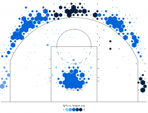 È inutile girarci intorno: alla base dei 53 milioni di dollari che andrà a guadagnare nei prossimi quattro anni c’è il suo vastissimo range di tiro, che fa di lui una seria minaccia nella metà campo più glamour. L’incredibile volume di conclusioni da tre punti tentate, oltre alla vittoria nell’ultimo Three-Point Contest tenutosi proprio a New Orleans, rappresentano una testimonianza più che sufficiente della sua importanza nell’economia offensiva dei Rockets: con 586 triple tentate, frutto di 8,9 tentativi a partita, è il terzo giocatore della Lega, dietro Steph Curry e James Harden, a fare più affidamento sulle sue doti balistiche, pur avendo calcato i parquet d’America rispettivamente 318 e 608 minuti in meno dei due leader della classifica.