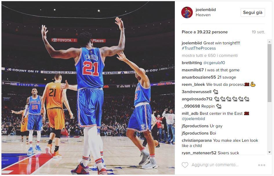 Questo è l’esordio di @joelembiid su Instagram, il 24 gennaio 2014.