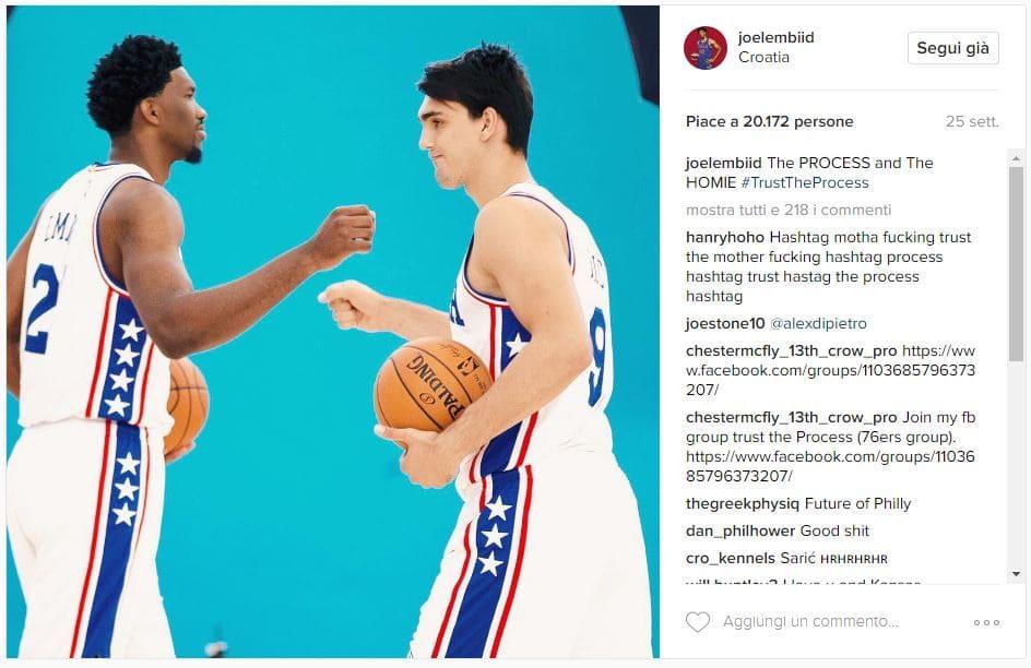 «Bello tornare in campo stasera. Ora non abbiamo più lo stesso numero di punti e minuti eh» Credits to: @joelembiid via Instagram.