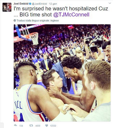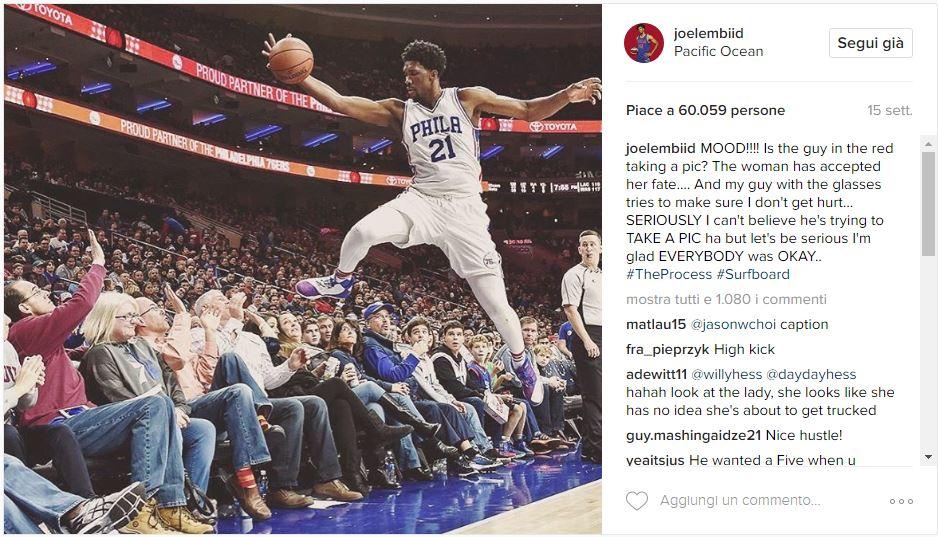 «Ho appena ricevuto il manuale con tutte le regole… Non sapevo che questa stoppata fosse vietata. Scusate se ho barato (emoticon) ma l’ho fatto perché lo facevo da noi in Africa e laggiù è legale. #siamotuttiafricani» Credits to: @joelembiid via Instagram.