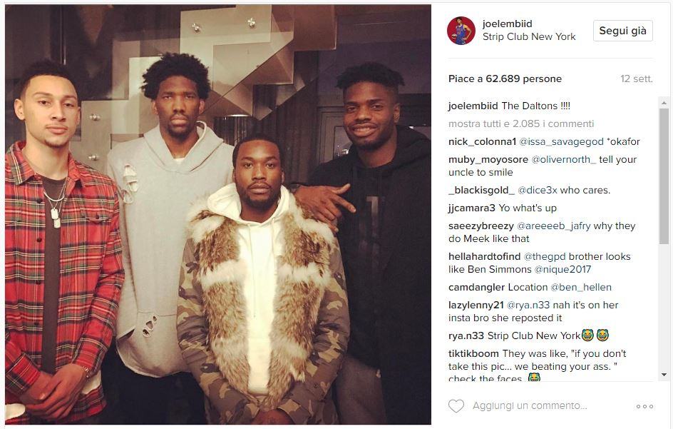 Partiamo da questo post, quasi banale. Una serata con gli amici: ci sono i compagni di squadra Ben Simmons e Nerlens Noel, oltre al rapper Meek Mill.