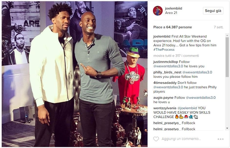 Joel Embiid con Kevin Garnett. “Area 21” come i loro numeri di maglia. Credits to: @joelembiid via Instagram.