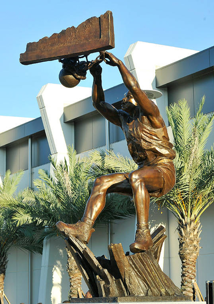 Scultura simile è quella che raffigura l’ex-Lakers, con i quali ha vinto tre titoli NBA, di fronte al palazzetto della Louisiana State University, college che ha frequentato prima di giocare in NBA.