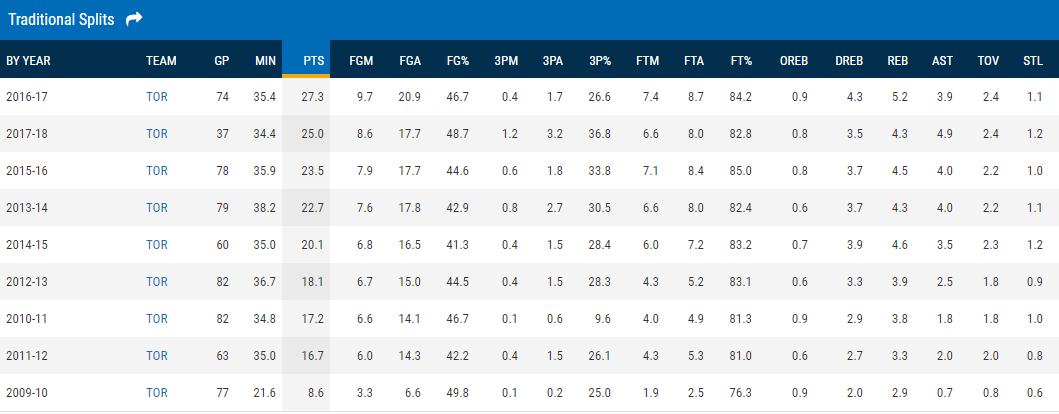 Bisogna cambiare, dice Ujiri a maggio. Testualmente: “we need a culture reset”. E questa volta si cambia per davvero. Innesti mirati come quelli di CJ Miles e OG Anuonoby, più minuti per VanVleet e Delon Wright, PACE più alto (da 94.7 a 100.6, decimo nella Lega), palla che si muove (molto) di più (da 18,5 a 22,9 assist a partita), più triple tentate (da 24 a 32,1) e realizzate peraltro con una percentuale pressoché identica (36% contro 35%). Ora, visto e considerato che per quanto fosse superficiale considerare DeRozan come la sola causa della staticità e prevedibilità dell’attacco dei Raptors degli scorsi anni rimane comunque innegabile il fatto che con quel sistema il nativo di Compton ci andasse a nozze, non erano in pochi a credere che potesse essere proprio lui la “vittima” di questo indispensabile mutamento. E invece proprio qui stanno tutti i meriti del numero #10 di Toronto: nella pronta volontà e straordinaria abilità di adeguarsi ad un nuovo contesto che avrebbe dovuto vederlo fare un passo indietro. E che invece, insieme ad un allenamento individuale chiaramente mirato durante l’estate, ha forse contribuito in maniera decisiva a fargli fare il tanto atteso e definitivo salto di qualità.