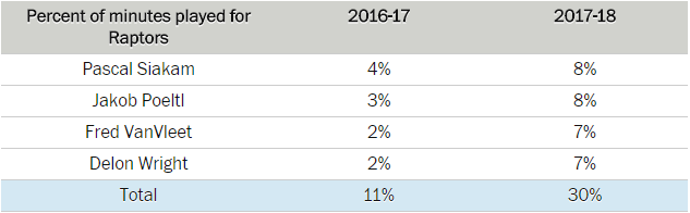 I Raptors hanno la miglior panchina dell’intera lega. E, che ci crediate o no, gran parte del merito va al signor Jerry Stackhouse, allenatore dei Raptors 905, squadra “satellite” di Toronto in G League nonché campione in carica della lega cadetta. Arrivano proprio da lì, infatti, i vari VanVleet, Powell, Poeltl, Siakam, Wright e Nogueira, costretti per l’intera scorsa stagione ad un pellegrinaggio continuo tra NBA e piano inferiore che proprio quest’anno sta dando frutti magari auspicabili ma sicuramente non pronosticabili nemmeno nelle fantasie più rosee di coach Casey. Per capirci: il quintetto VanVleet-Wright-CJ Miles-Siakam-Poeltl nei 125 minuti giocati insieme segna oltre 125 punti su 100 possessi e ne subisce appena 94 (per un Net Rating di +31.1!).