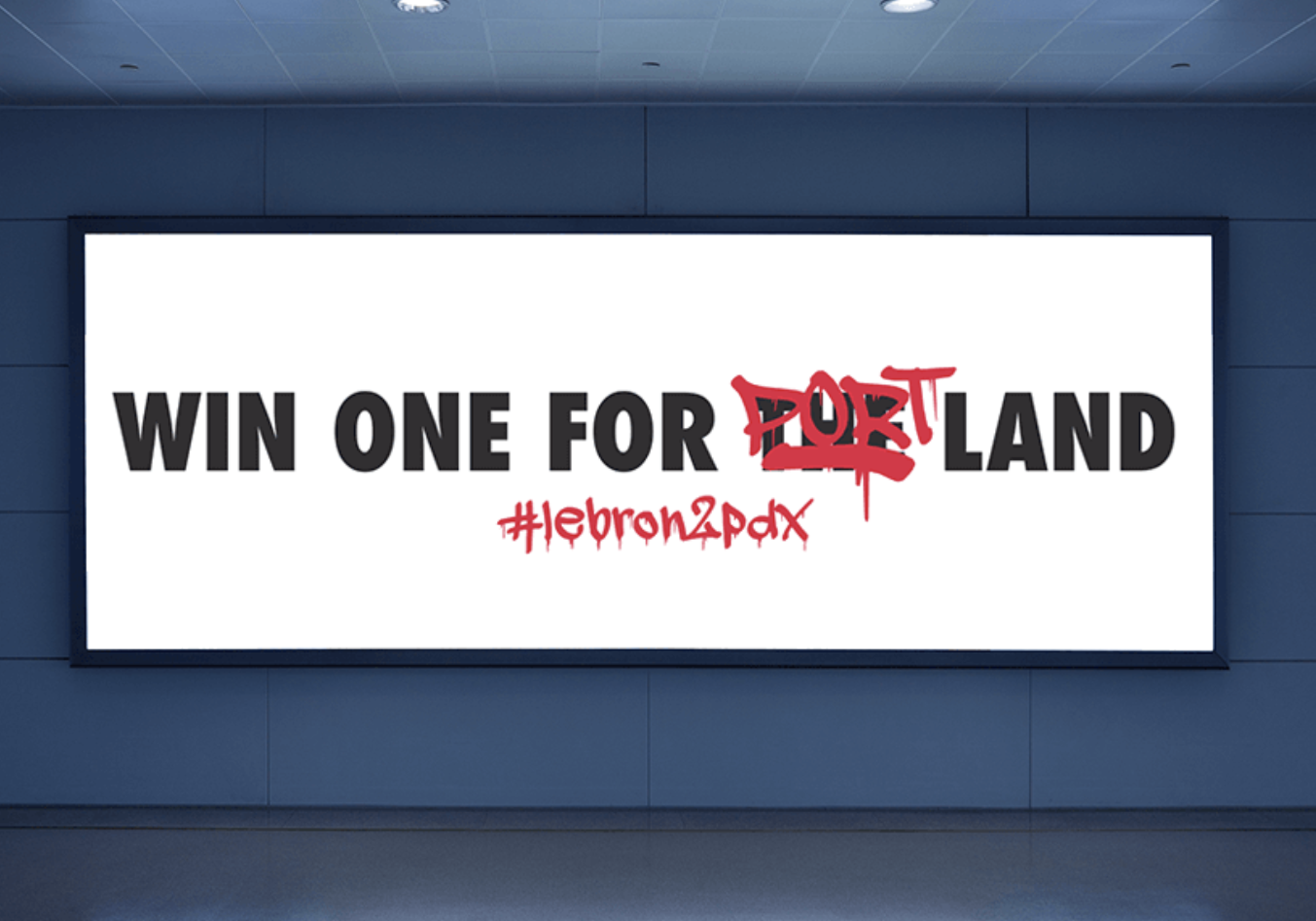 Stessa situazione di New Orleans, Milwaukee e tante altre: zero flessibilità e zero asset per rendere LeBron meno di un’utopia. Il cartellone è altrettanto deviante: vincine uno per The (Cleve)Land viene coperto dal graffito Portland. Ottimo l’effetto-bomboletta, si poteva forse fare meglio con l’hashtag: LeBron a PDX, l’aeroporto.