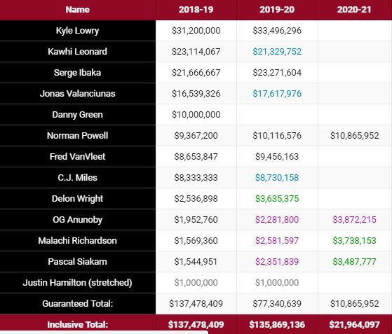 Solo 10 milioni garantiti per la stagione 2020-2021 per Toronto: piuttosto rapido come processo di smantellamento.
