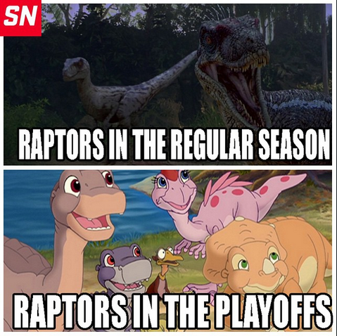 Solo uno dei meme più famosi sulla trasformazione dei Raptors ai Playoff (Credits to SportsNation)
