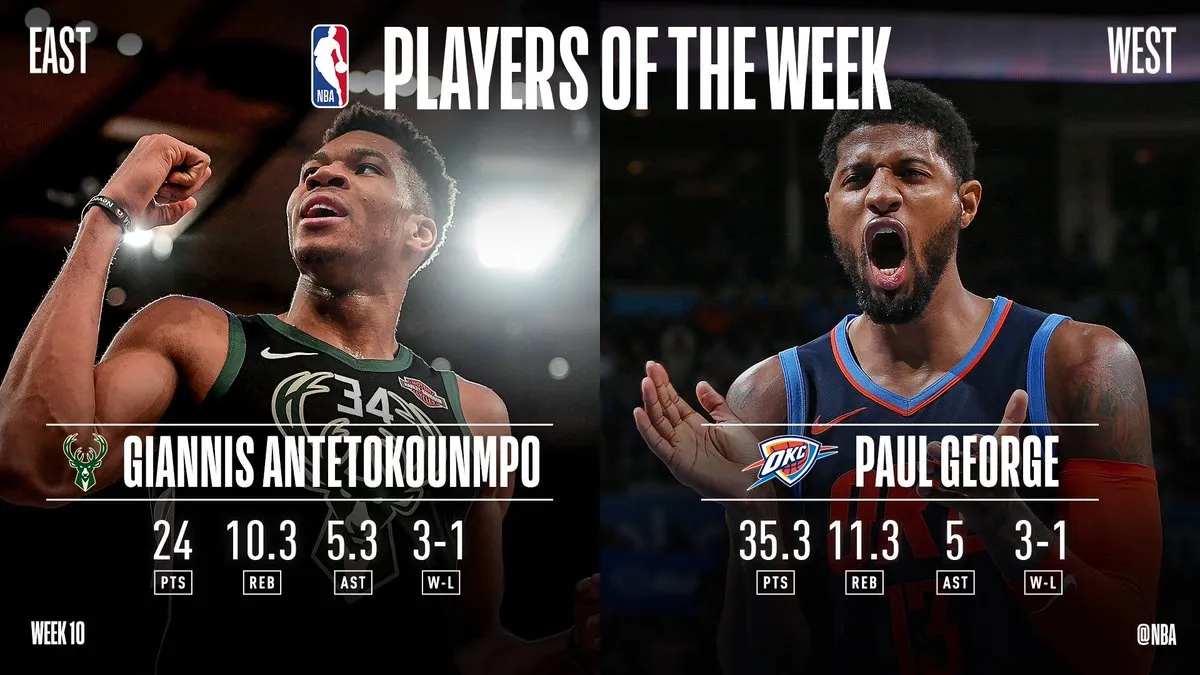 Giannis Antetokounmpo e Paul George sono stati nominati “Players of the week” rispettivamente per la Eastern e Western conference.