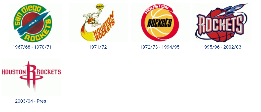 Sono bastati quattro anni dalla loro fondazione, datata 1967, per trasferire i Rockets da San Diego a Houston. Con esso arrivò dunque la prima modifica al logo, passando da un semplice razzo a un giocatore che lascia una scia saltando, seguita da un’immediata modifica al via della stagione successiva per mettere in risalto il nome della società. Nel ’95 si tornò al razzo, mentre in quello attuale è la lettera R che sembra volersi staccare da terra, effetto reso possibile grazie alle sfumature verticali poste alla base della lettera.