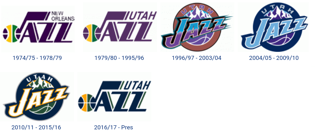 Con un nome che rimanda al popolare genere musicale, la rappresentazione grafica di una nota sembrava l’ideale per il logo della squadra. La società optò così per una grafica piuttosto efficace: la lettera J venne leggermente inclinata per farla assomigliare a una nota musicale, aggiungendoci una palla da basket. Tale logo fu utilizzato per i primi vent’anni di storia della franchigia, per poi venire sostituito da uno di forma circolare raffigurante le montagne dello Utah. Nel 2016/17 il ritorno alle origini, con il vecchio logo che ha visto solamente una modifica nella tonalità dei colori.