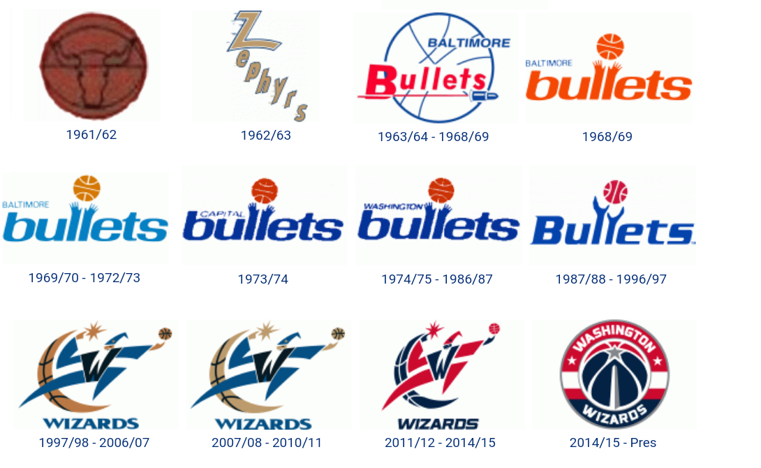 Infine, i Washington Wizards chiudono questa nostra rassegna sui loghi NBA. Fondati a Chicago con il nome di Packers, il cui simbolo era un toro – d’ispirazione per quello dei non ancora nati Bulls -, l’anno seguente cambiarono nome in Zephyrs, salvo poi trasferirsi a Baltimora adottando il nome di Bullets. Il logo venne poi modificato altre cinque volte, complice anche il trasferimento a Washington, prima di giungere all’attuale Washington Wizards e adottare un mago come simbolo; infine, nel 2014 l’ultimo restyling, che ha reso circolare la grafica del logo.