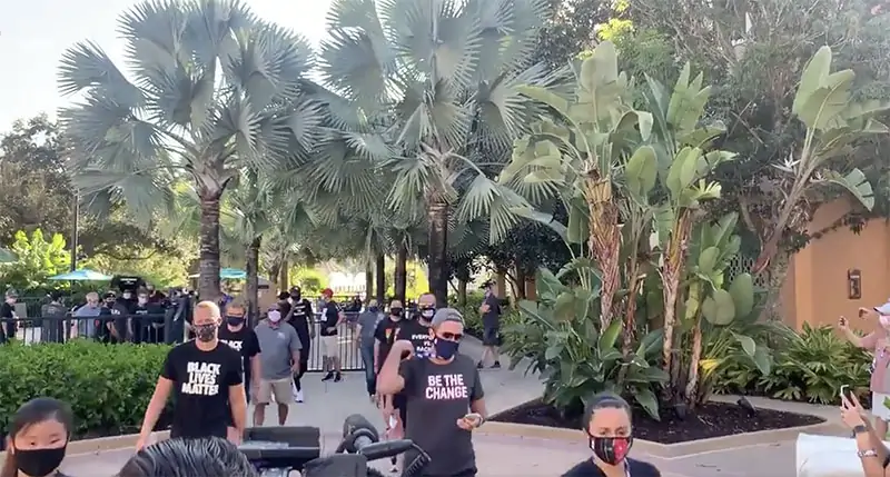 Ebbene, per rinforzare il concetto, gli arbitri hanno marciato all’interno della bolla di Orlando per lanciare il proprio messaggio di giustizia sociale e per chiedere giustizia dopo il caso di Jacob Blake che sta scuotendo l’intero paese. Una marcia che ha coinvolto un centinaio di persone e che, simbolicamente, è stata ripresa dalle telecamere.