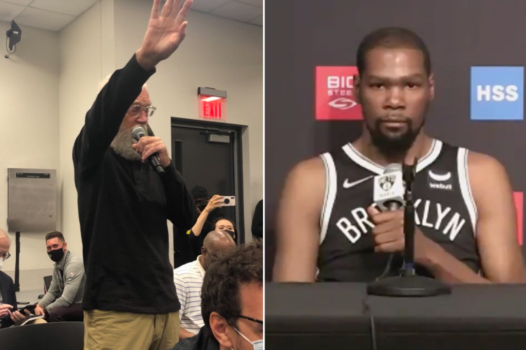 Nel corso del Media Day dei Brooklyn Nets, si è tenuto un curioso e simpatico siparietto tra il noto conduttore televisivo David Letterman e la stella della squadra Kevin Durant. Letterman si è presentato come Dave di Basketball Digest, e prima di porre le sue domande a Durant, ha chiesto al giornalista seduto di fianco a lui: