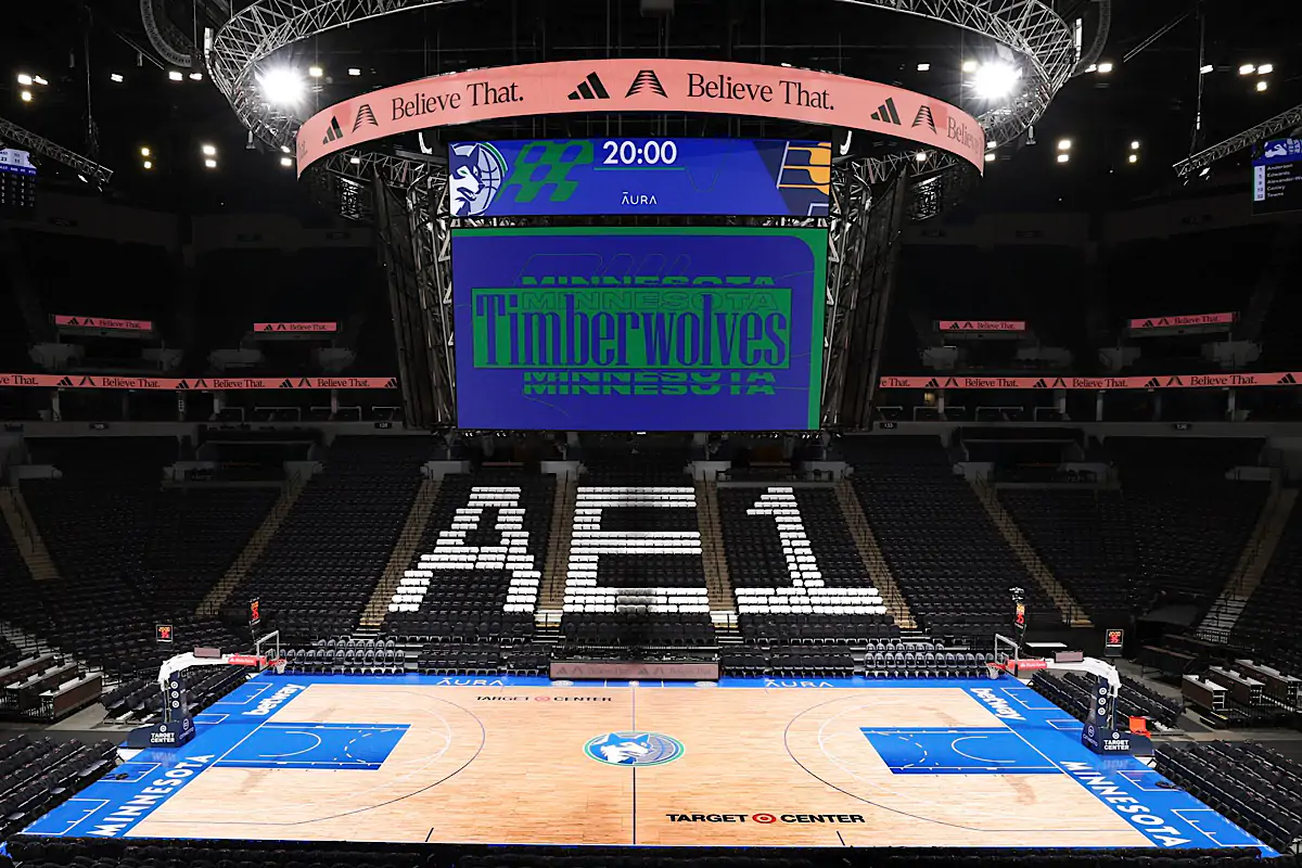 Il debutto sul mercato delle AE1, scarpe griffate Adidas con protagonista Anthony Edwards, ha portato il marchio a immaginare un restyling temporaneo dell’impianto di Minneapolis. Sugli spalti del Target Center merchandise dedicato, e la scritta AE1, che riprende la nuova linea di signature shoe. Prezzo di lancio, da sabato 16 dicembre, 120 dollari.