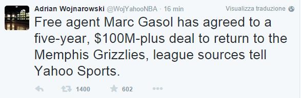 Dopo una lunga trattativa è finalmente arrivata l’ufficialità: Marc Gasol ha prolungato il suo contratto con i Memphis Grizzlies. Il nuovo...
